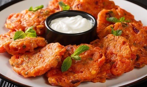 Bolinhos de tomate macios servidos com molho de tomate caseiro — perfeitos como entrada ou acompanhamento.