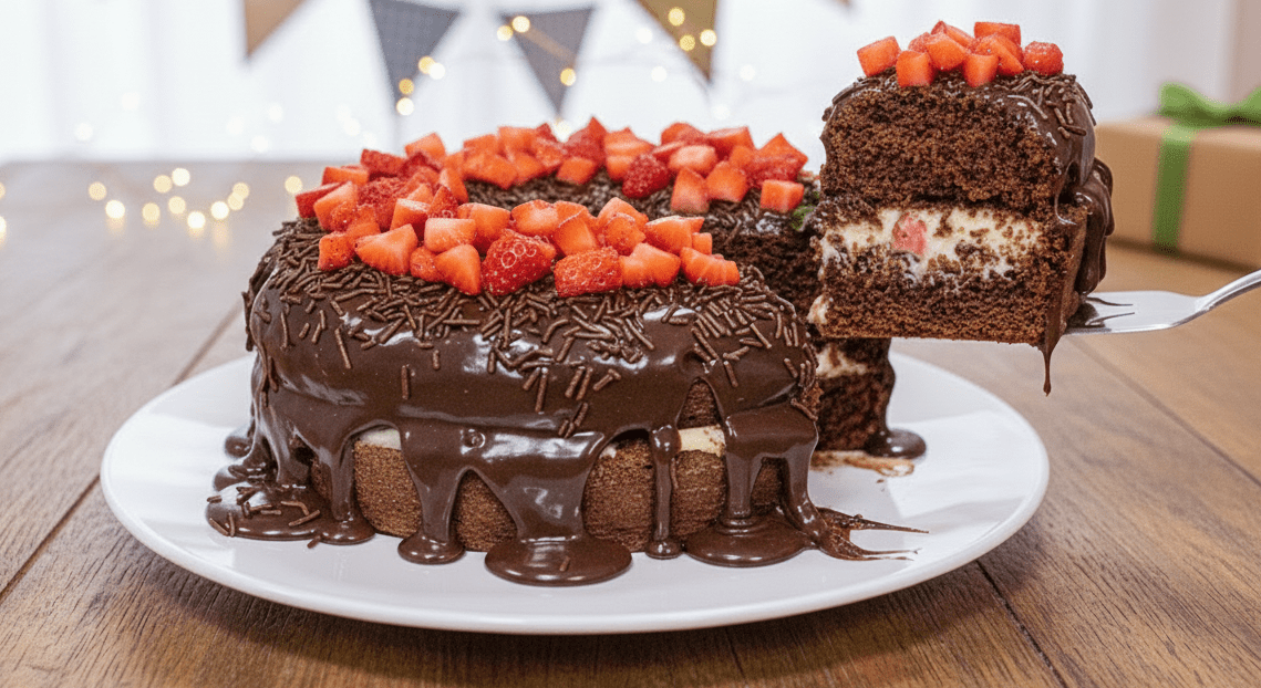 Como Fazer Bolo de Brigadeiro e Morango Receita Fácil