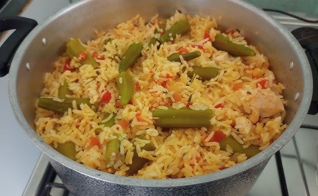 Arroz soltinho refogado com sardinha e quiabo, uma combinação prática, nutritiva e cheia de sabor para qualquer refeição.