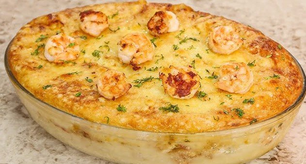 Cremoso, aromático e irresistível: o escondidinho de bobó de camarão combina purê de mandioca macio com um bobó cheio de sabor e textura — perfeito para almoços especiais.