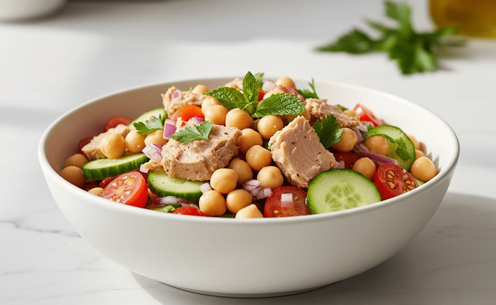 Salada de Grão-de-Bico com Atum – Pronta em 10 Minutos
